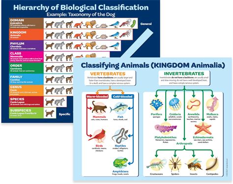 ZOCO - Classification Of Animals & Biological Hierarchy - Science Poster Set, Laminated 17X22 - Must Have 2-Pack For Biology Classroom