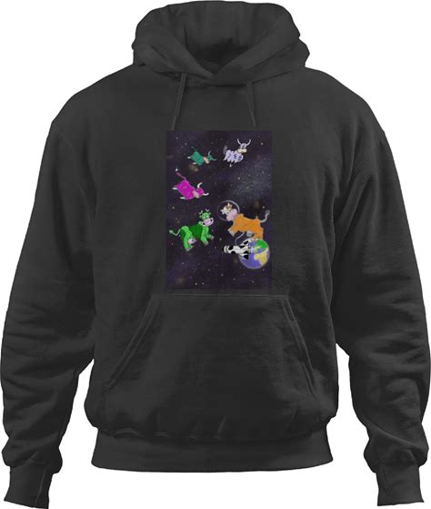 Space Cows Unisex Black Hoodie - Unique Cosmic Cattle Graphic Sweatshirt - Perfect For Space And Alien Fans