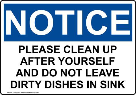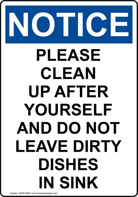 Portrait OSHA NOTICE Please Clean Up After Yourself Sign, Plastic | Size: 7X5, ONEP-35807 | By Compliancesigns